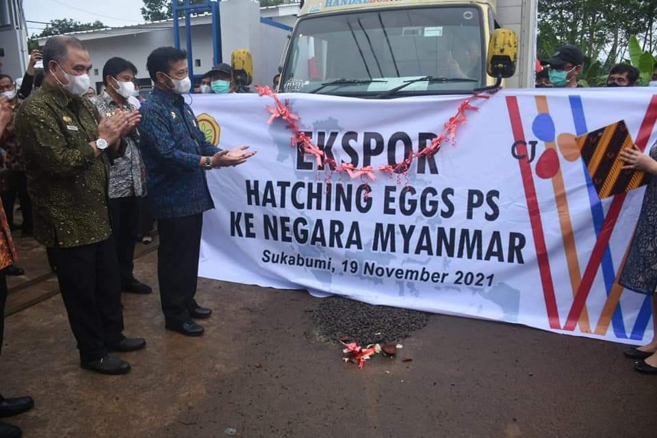 Bogor 19/11/21, Menteri Pertanian Syahrul Yasin Limpo (SYL) melepas ekspor telur tetas atau hatching egg Parent Stock (PS) ayam broiler PT.CJ PIA sebanyak 58.500 butir telur senilai 3 Miliar Rupiah. “ Kami mengapresiasi kepada pelaku usaha yang terus semangat untuk memproduksi produk unggas, bahkan bisa untuk memenuhi pasar ekspor” Tutut SYL di acara pelepasan Ekspor …